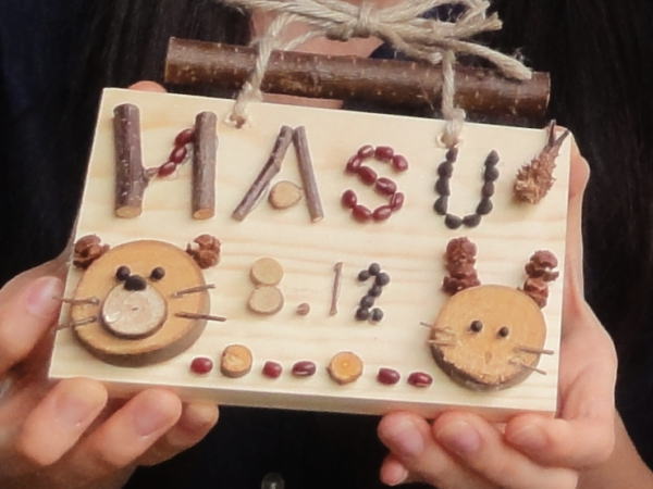 飾り板に好きな絵や文字を描いて、表札や壁飾りを作ります。
