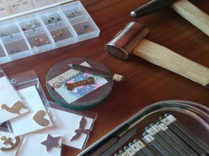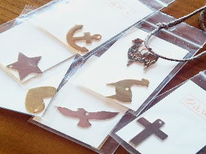 好きなプレートを選んだら、名前やメッセージを刻印して出来上がり。キーホルダーやストラップなどにつけて仕上げます。