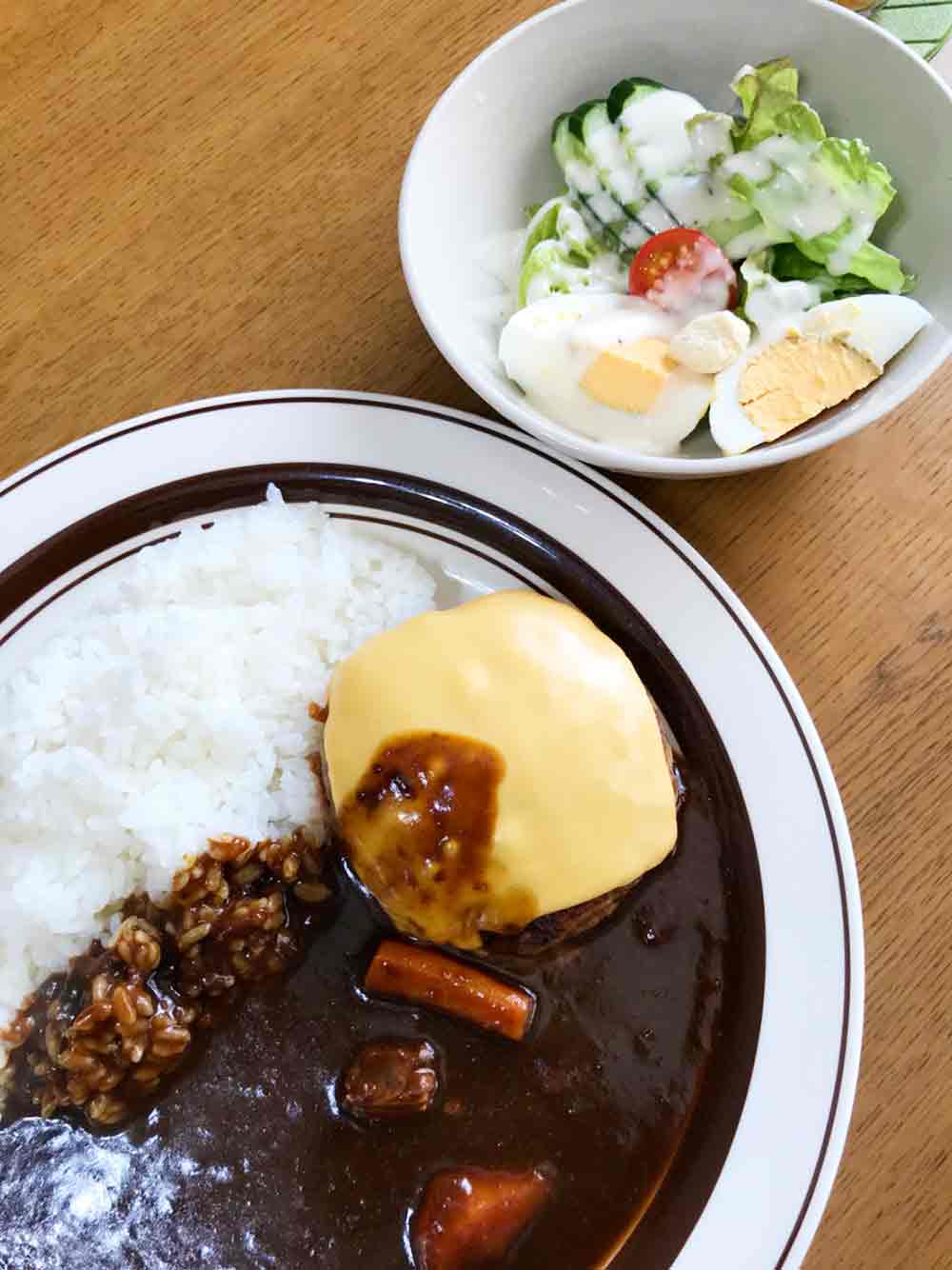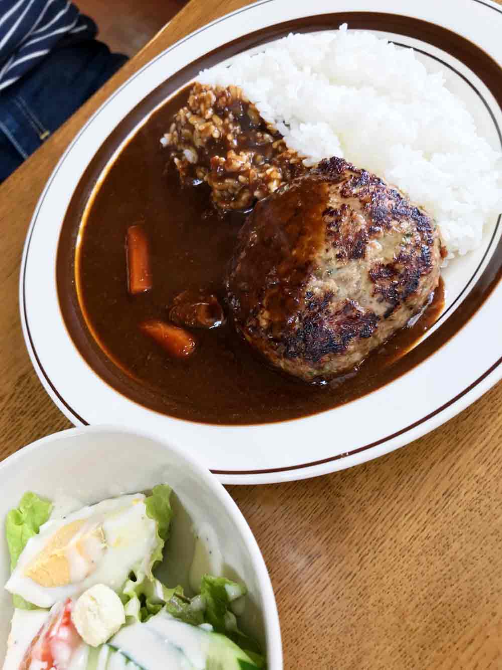 こちらはハンバーグカレー辛口です。もちろんサラダも付きますよ。