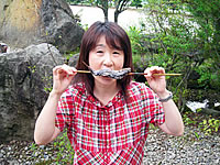 自分で釣った魚をその場で炭火焼に。テラスはペットもOKです!
