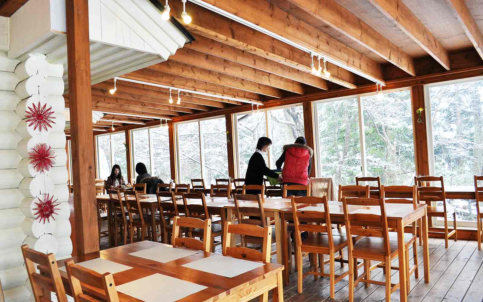 店内は森に面していて窓が大きく、明るい雰囲気で広々!
