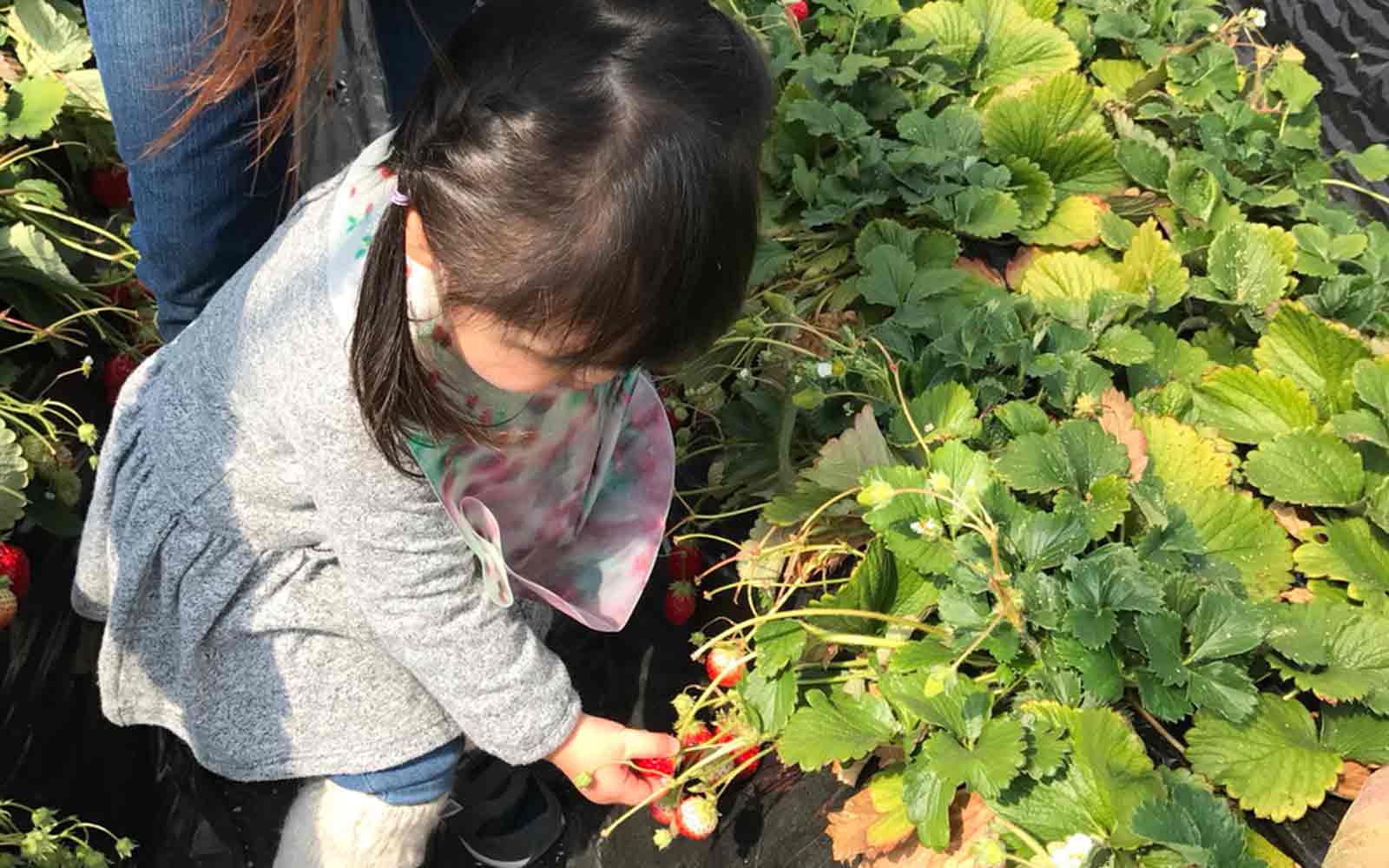 しおばらいちごランドは、小さい子供でも自分で採って食べられます。