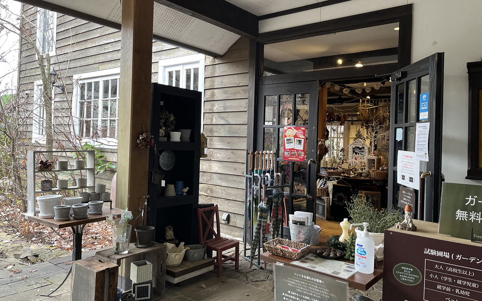 イギリスのコテージのような建物でしょうか。雑貨や花苗、ガーデニング用品など販売や、カフェも人気があるようです。