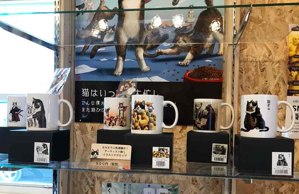 店内に入るとTシャツや、様々な猫のイラストグッズがたくさんありますね♪