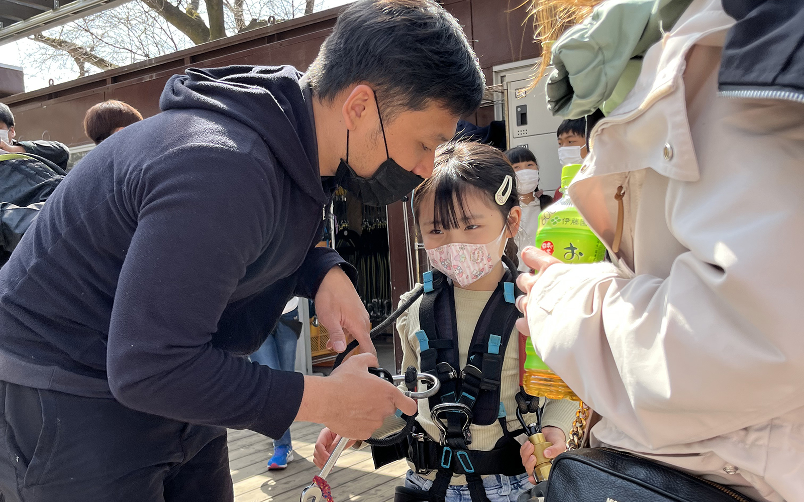 スタッフ(ガイド)のお兄さんがハーネスやヘルメットをしっかりと取り付けてくれます。